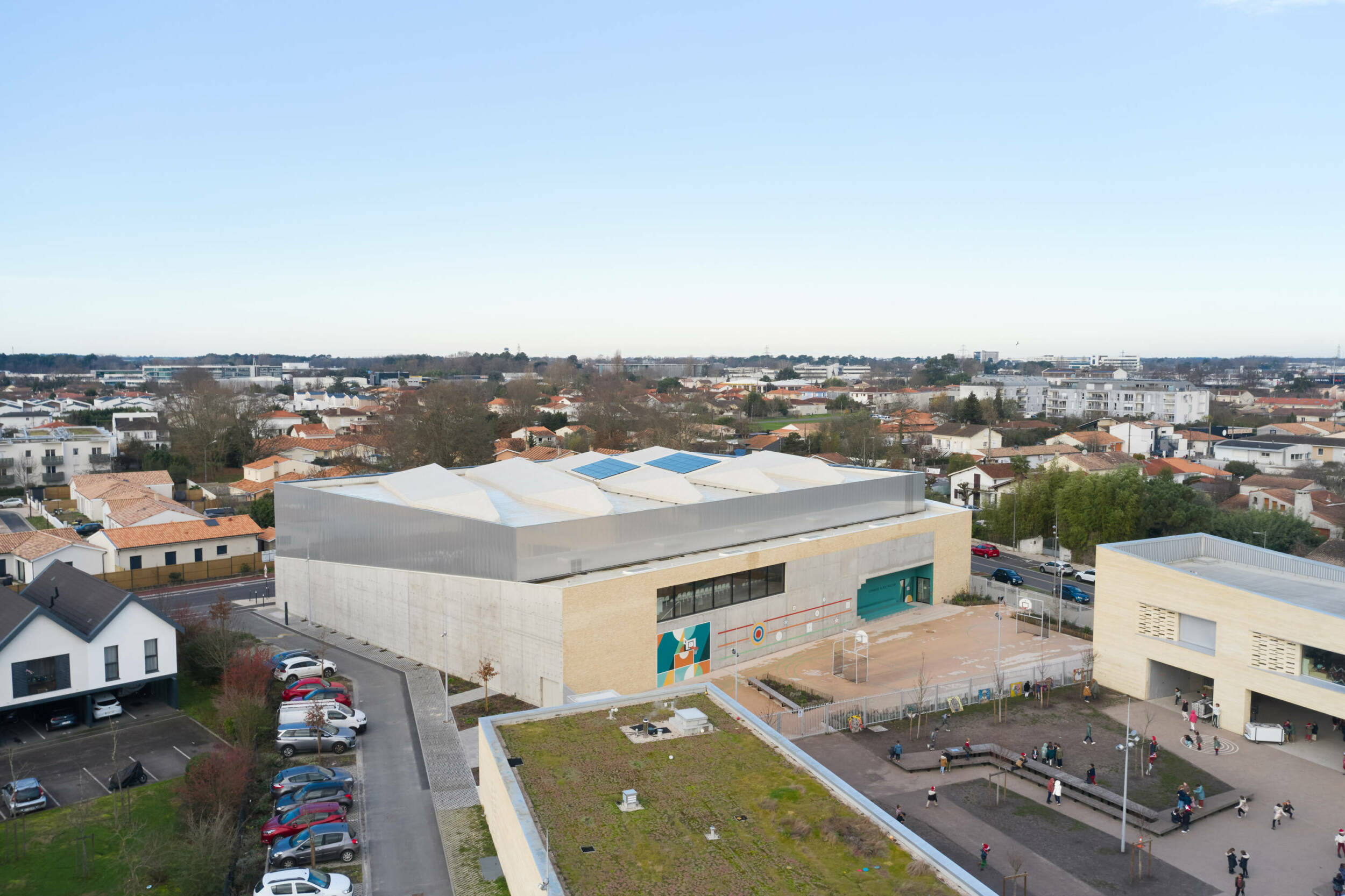 On September 27, the new Alice Milliat Gymnasium in Mérignac was inaugurated, directly connected to the Rosa Bonheur school complex. The facility accommodates school, community, and high-level sports activities, featuring a large multi-sports hall, an artificial climbing structure, an additional activity room, and a social space.